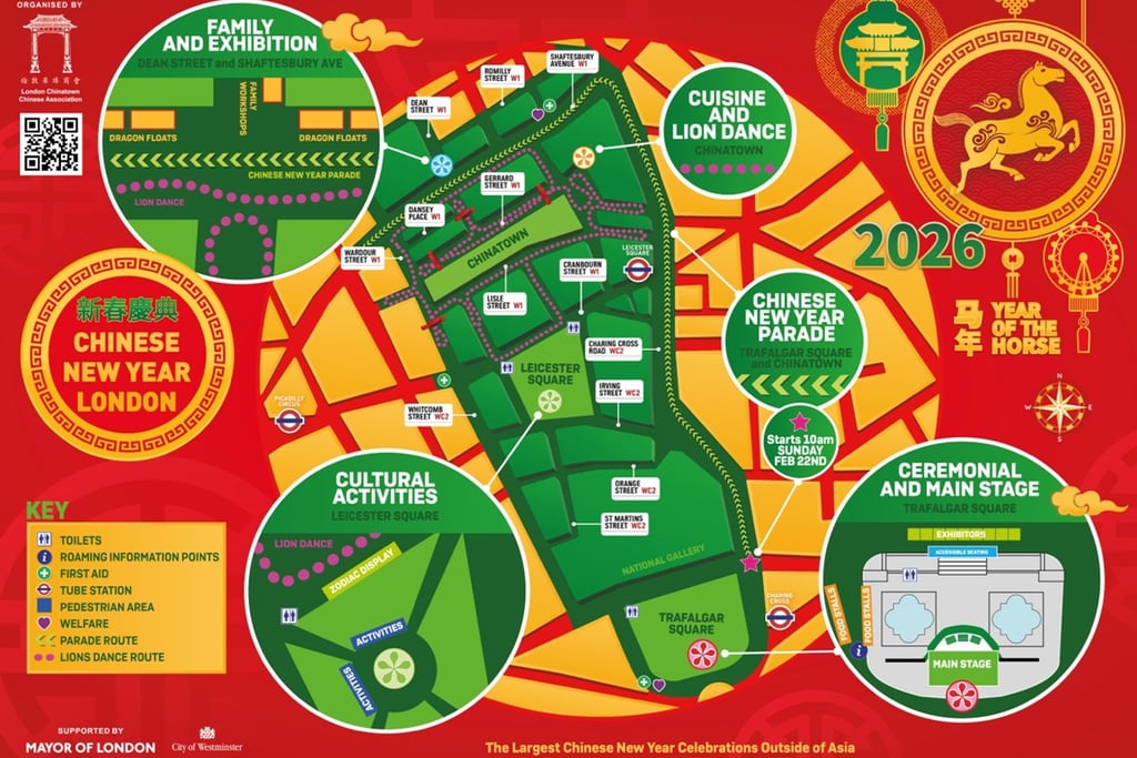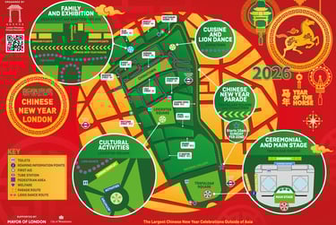 The official Opening Ceremony takes place at 12:30 p.m. in Trafalgar Square. It includes the traditional lion awakening, followed by flying lion dances. The main stage in Trafalgar Square features a variety of cultural performances, culminating with a stunning grand finale that promises to leave a lasting impression.