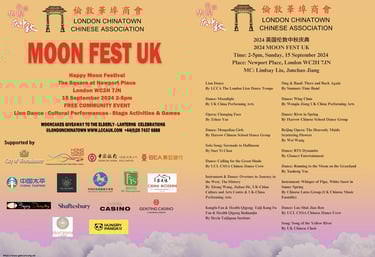 The London Chinatown Chinese Association (LCCA) hosted the Moon Fest UK 2024 on 15 September 2024, attracting a large crowd of locals and international visitors. Distinguished guests, including LCCA Chairman Chu Ting Tang OBE and the Lord Mayor of Westminster Robert Rigby. The lord Mayor delivered a speech highlighting the LCCA’s contribution in promoting cultural exchange and the significance of the Mid-Autumn Festival. With support from many local sponsors, the event was able to deliver vibrant cultural performances, including lion dances, tai chi, Sichuan opera face-changing, and Chinese traditional dance, and many more.